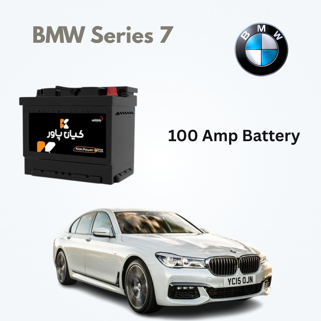 باتری فابریک نصب شده در کارخانه بر روی خودروی بی ام و سری 7، یک باتری 100 آمپر ساعتی با استاندارد L5 است. تنها باتری با همین مشخصات فنی برای این خودرو مناسب و قابل استفاده است. با توجه به ابعاد تعیین شده برای محل قرارگیری باتری، هیچ نوع باتری دیگری با این خودرو سازگار نخواهد بود.