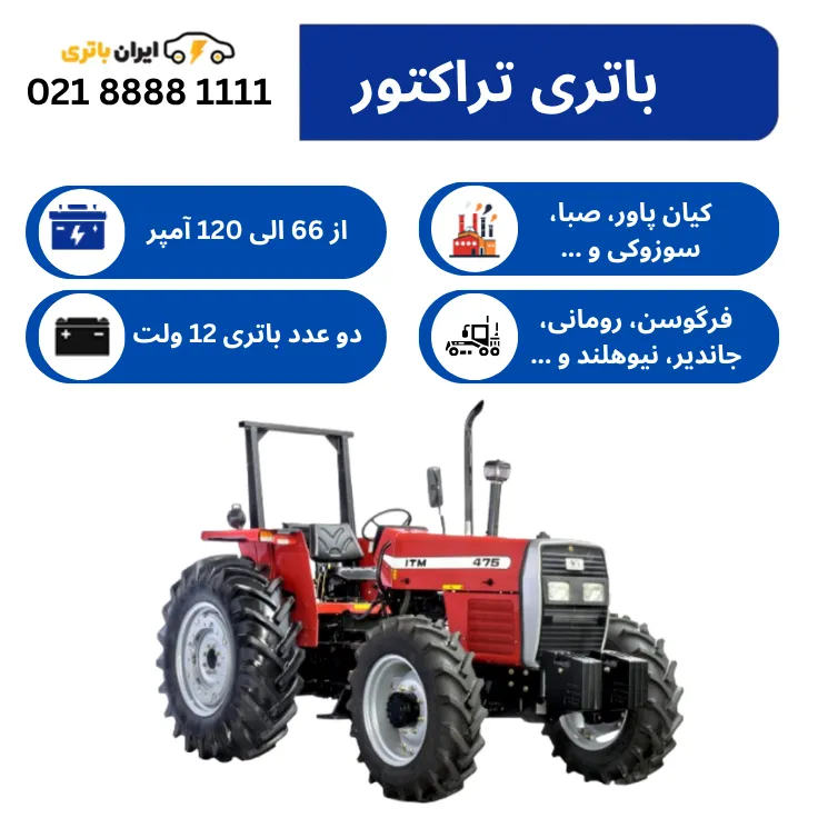 باتری تراکتور بسته به نوع آن از66 آمپر تا 120 آمپر متفاوت است.