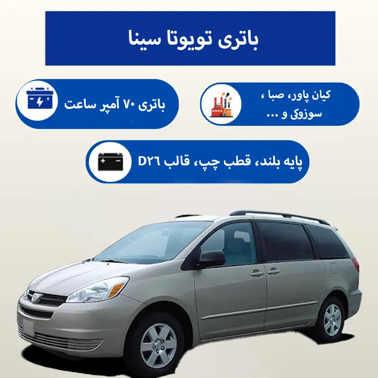 خرید باتری تویوتا سینا با ارسال و نصب در محل