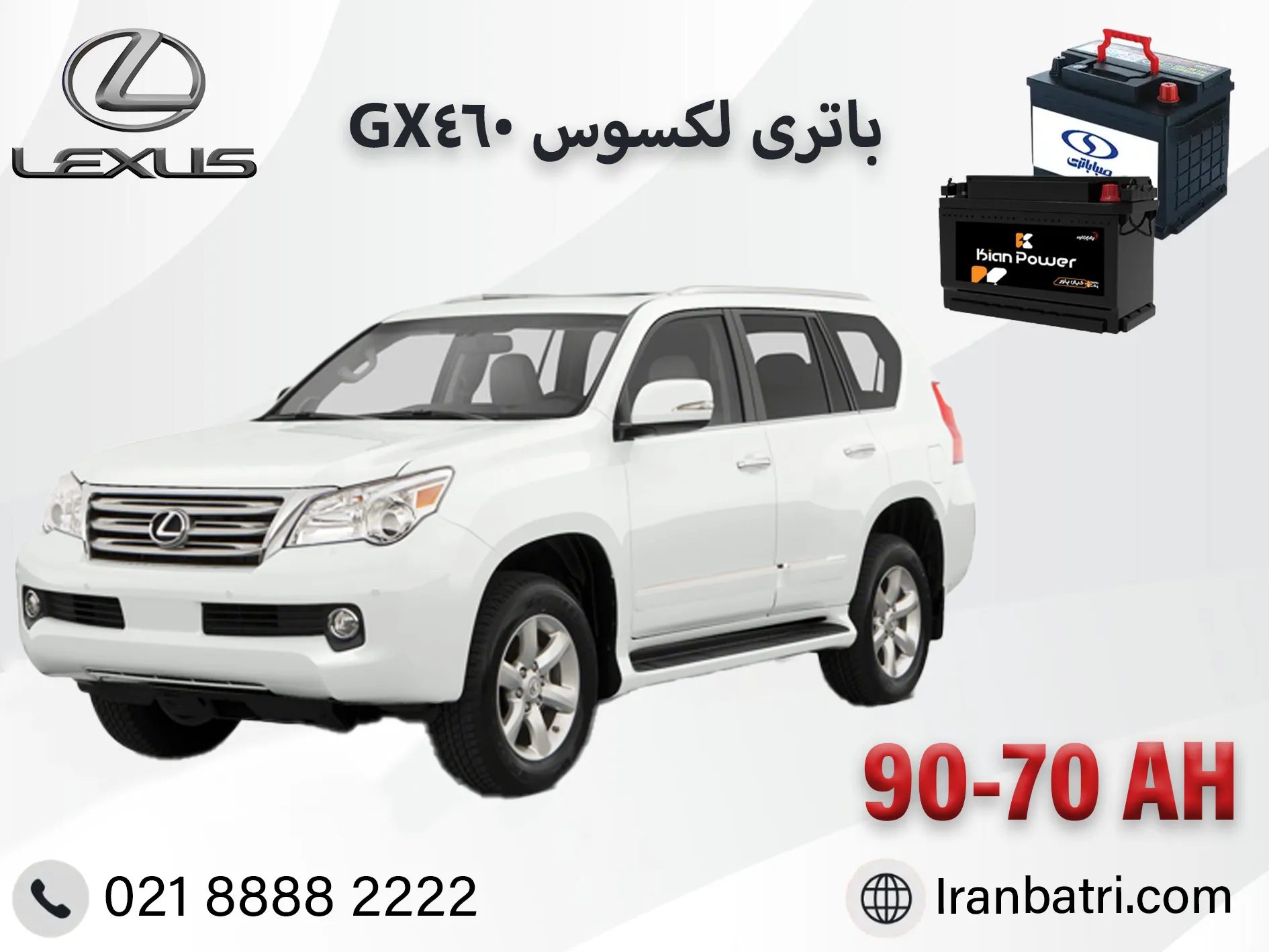 ایران باتری با ارائه باتریهای استاندارد، تاریخ تولید جدید و گارانتی معتبر، یکی از بهترین گزینهها برای خرید باتری لکسوس GX460 است.