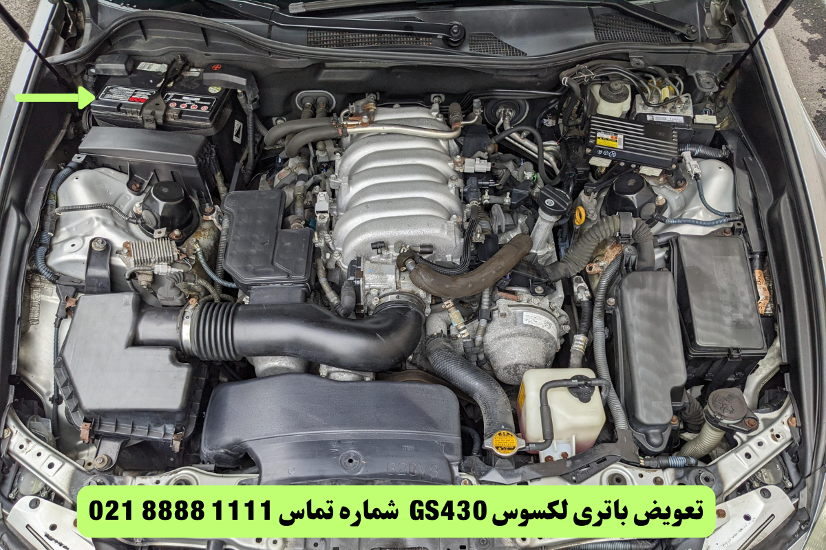 باتری لکسوس GS430 در بخش جلویی خودرو، سمت شاگرد و زیر برفپاککن قرار دارد. این طراحی با هدف دسترسی آسان، محافظت از باتری در برابر حرارت موتور و بهبود تهویه انجام شده است. قالب D26 و چینش قطبهای پایه بلند (قطب چپ) برای نصب صحیح ضروری است. این محل امکان تعویض سریع باتری را بدون نیاز به ابزارهای پیچیده فراهم میکند و از آسیب به قطعات اطراف جلوگیری میکند. مالکان میتوانند با باز کردن کاپوت، بهراحتی به باتری دسترسی داشته باشند.