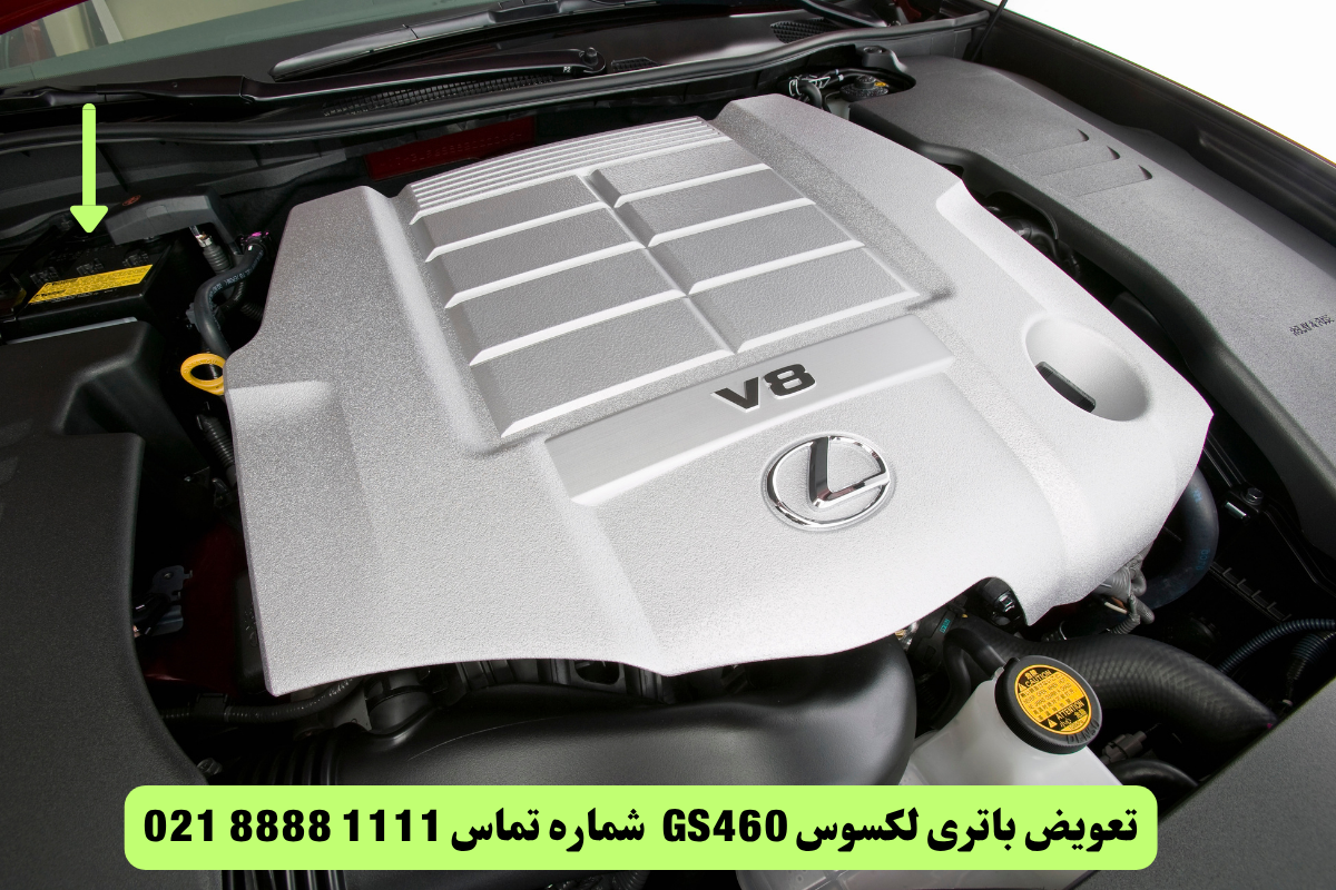 باتری لکسوس GS460 در بخش جلویی خودرو، سمت شاگرد و نزدیک برفپاککن قرار دارد. این محل برای دسترسی آسان، محافظت از باتری در برابر حرارت و بهبود تهویه طراحی شده است. قالب D26 و چینش قطبهای پایه بلند (قطب چپ) برای نصب صحیح ضروری است. این طراحی امکان تعویض سریع و بدون نیاز به ابزارهای خاص را فراهم میکند و از آسیب به قطعات اطراف جلوگیری میکند.