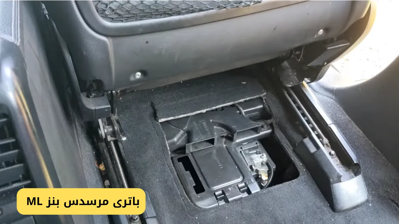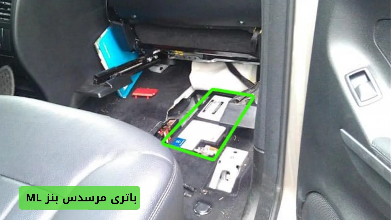 باتری خودرو مرسدس بنز ML در داخل کابین زیر صندلی سرنشین این خودرو قرار دارد. در تصاویر زیر میتوانید محل نصب باتری این خودرو را مشاهده نمایید: