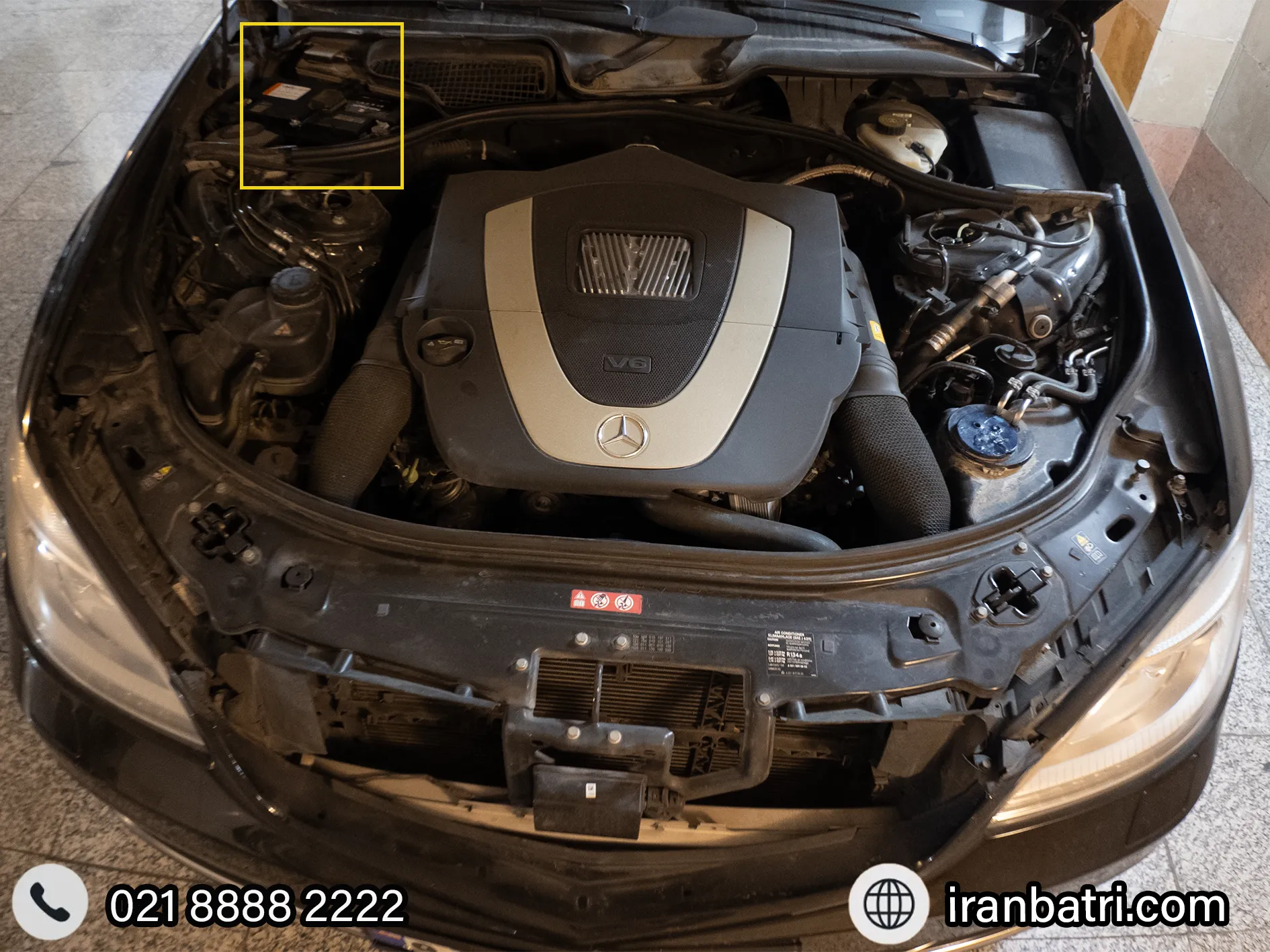 ماشین مرسدس بنز کلاس S دارای دو عدد باتری میباشد. باتری اصلی آن در صندوق عقب و باتری بک آپ آن در قسمت پیشرانه موتور قرار گرفته است. در تصاویر زیر میتوانید محل نصب باتری های این خودرو را مشاهده نمایید: