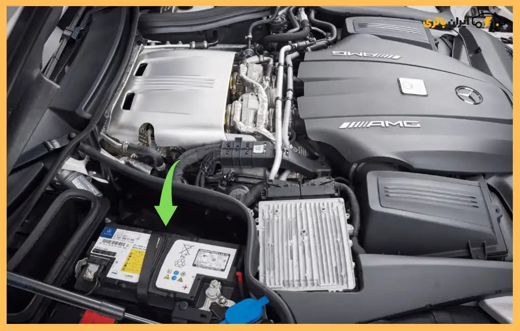 محل نصب باتری در مرسدس بنز AMG GT، در محفظه موتور و دقیقتر بگوییم، در قسمت عقب محفظه کاپوت جلو قرار دارد؛ بهگونهای که با باز کردن کاپوت، بهراحتی میتوان به آن دسترسی داشت. تصویر این محل نصب را نیز در بخش زیر برای مشاهده بهتر قرار دادهایم.