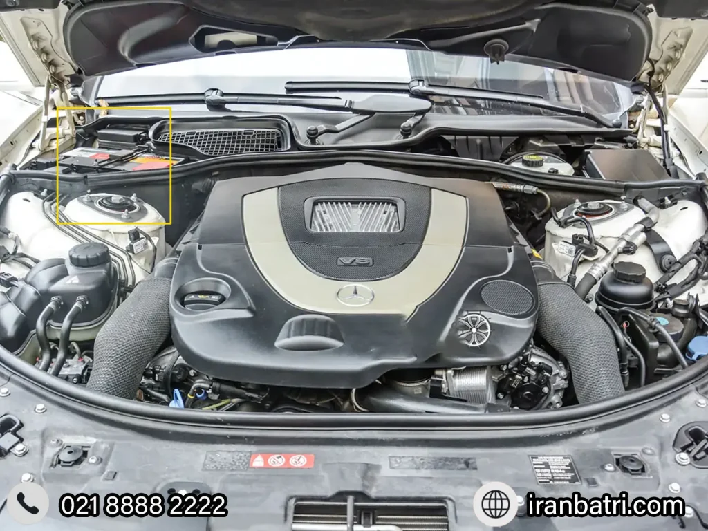 باتری خودرو مرسدس بنز CL در قسمت محفظه موتور این خودرو قرار دارد.