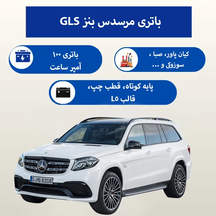 باتری فابریک نصب شده روی مرسدس بنز GLS، معمولاً یک واحد ۱۰۰ آمپر ساعتی با ابعاد قالب L5 است. این مشخصات نشاندهنده دو نیاز اساسی خودرو است: