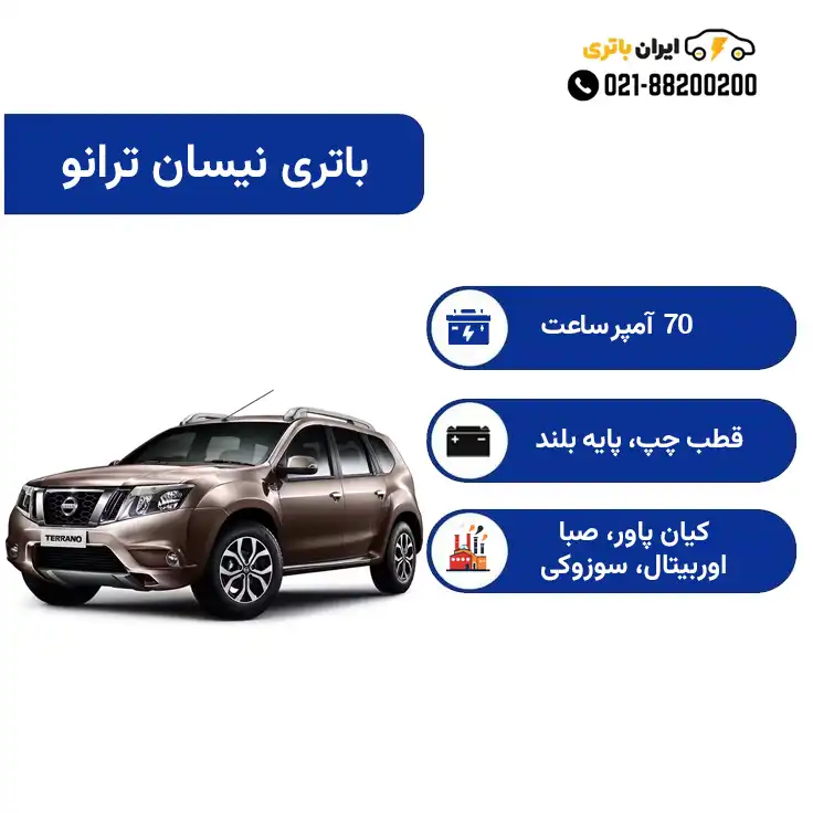 انتخاب ۷۰ آمپرساعت برای نیسان ترانو یک توازن عالی بین توان استارت و طول عمر باتری ایجاد میکند. این ظرفیت بالا: