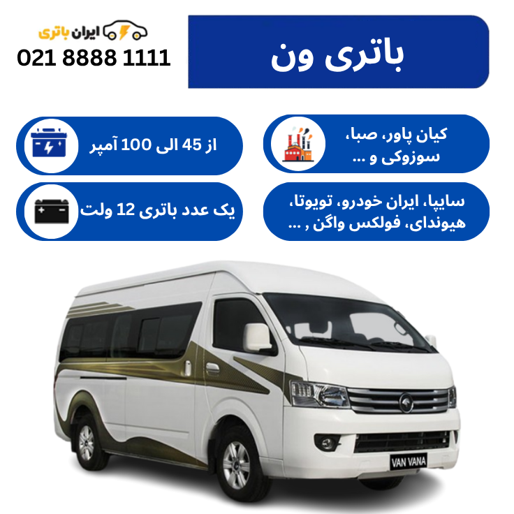 ایران باتری به عنوان یکی از پیشروترین تأمینکنندگان باتریهای وسایل نقلیه سبک در بازار ایران، طیف گستردهای از باتریهای باکیفیت را برای مدلهای مختلف ون عرضه میکند. این محصولات با رعایت استانداردهای پیشرفته تولید، نیازهای ونهای مسافری، حملونقل شهری و کاربردهای تجاری را به طور کامل پوشش میدهند. برای استفاده از خدماتی مانند نصب باتری در محل، تحویل سریع یا تعویض فوری، کافی است با شماره تماس موجود در بالای صفحه ارتباط بگیرید. ایران باتری با تعهد به خدمات سریع و قابل اعتماد، رضایت مشتریان را در اولویت قرار داده و بر افزایش دوام محصولات تمرکز دارد تا عملکردی ایمن و طولانیمدت را تضمین کند.